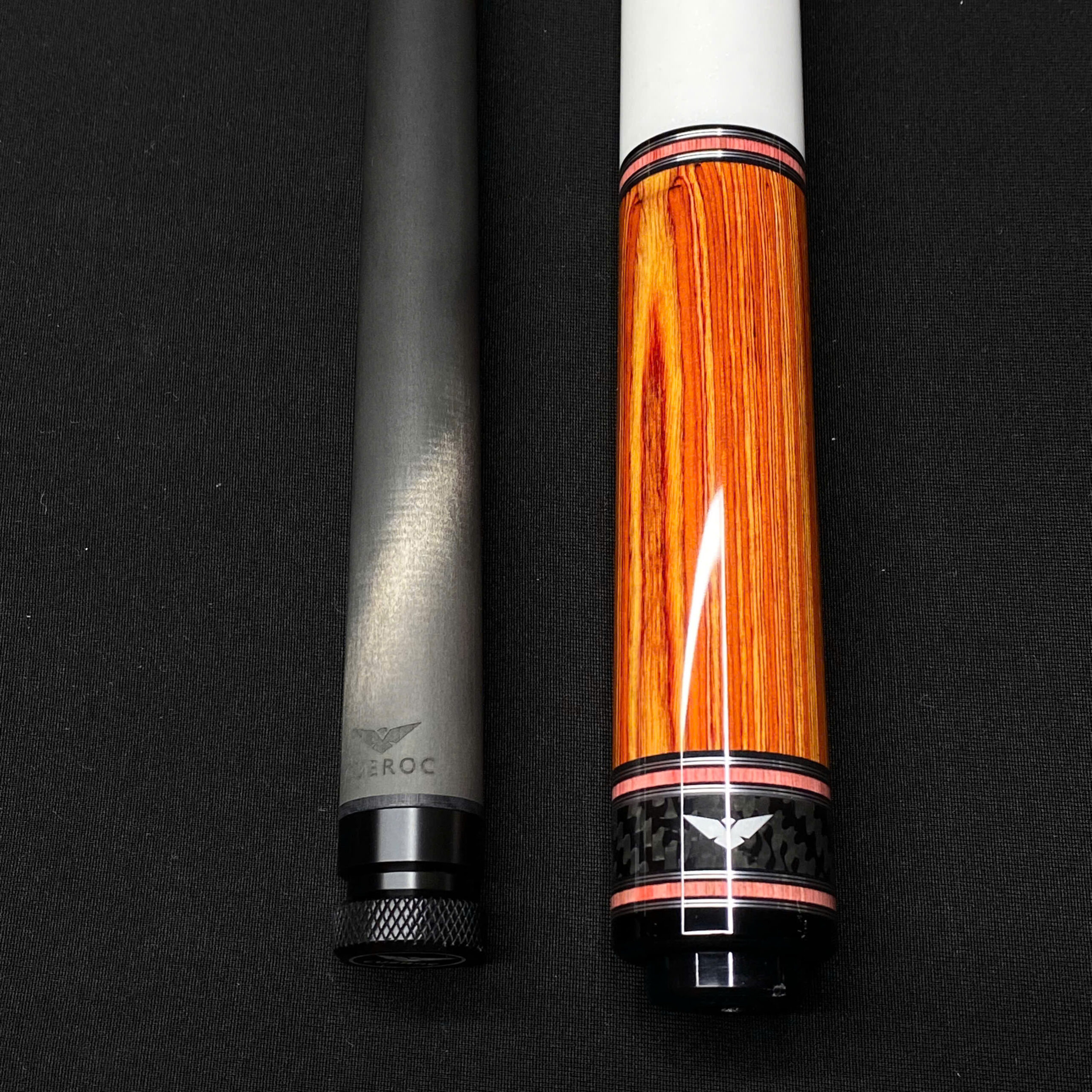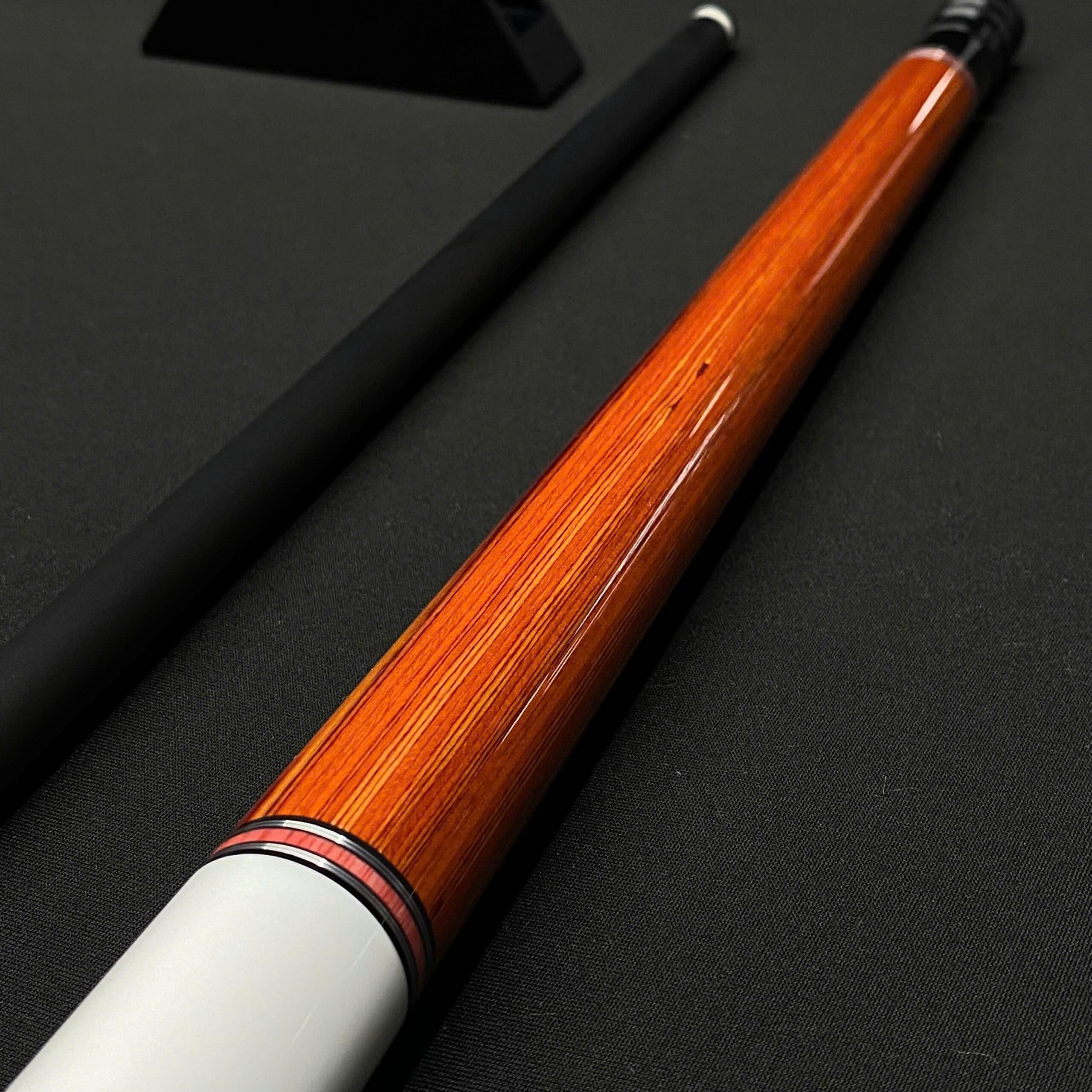 Phần ngọn sử dụng carbon fiber 12.4mm, giúp tối ưu độ cứng, giảm độ bạt bi và tăng khả năng kiểm soát đường đi. Chuôi cơ nổi bật với chất liệu Dymond Tulipwood cao cấp, kết hợp cùng các chi tiết khảm ring đồng và sợi carbon 3K, tạo nên tổng thể vừa sang trọng vừa hiện đại.